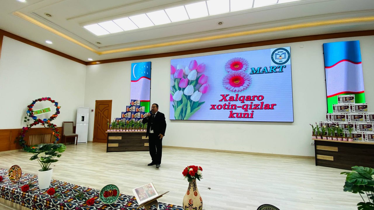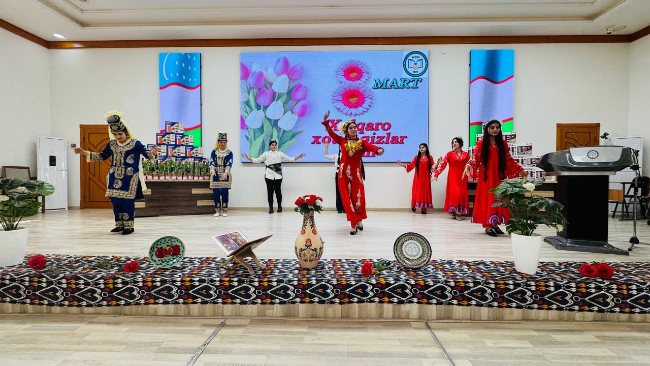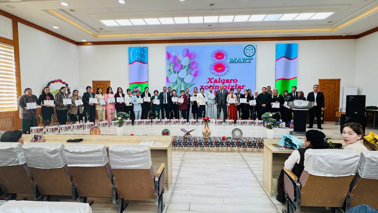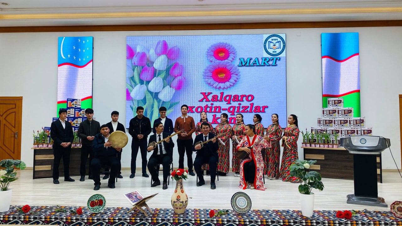 Bugun “8-mart – Xalqaro xotin-qizlar kuni” munosabati bilan bayram tadbiri bo‘lib o‘tdi. Unda institutimiz rektori O.A.Ruziyev muhtarama opa-singillarimizni tabriklab jumladan shunday dedi: Bugungi kunda jamiyatimizda xotin-qizlarning o‘rni va mavqei tobora yuksalib bormoqda. Davlatimiz tomonidan ayollarning huquq va manfaatlarini himoya qilish, ularning ta’lim olishi, ilm-fan bilan shug‘ullanishi hamda jamiyat hayotida faol ishtirok etishi uchun keng imkoniyatlar yaratilmoqda. Bugungi kunda institutda jami 8045 nafar talaba tahsil olmoqda. Ularning 3840 nafarini talaba-qizlarimiz tashkil etadi. Institutda bugungi kunda jami 635 nafarlik jamoa faoliyat yuritayotgan bo‘lsa, ularning 222 nafarini xotin-qizlar tashkil etadi. Fursatdan foydalanib institutimizda bilim berayotgan va bilim olayotgan barcha opa-singillarimizni biyram bilan muborakbod etaman.
