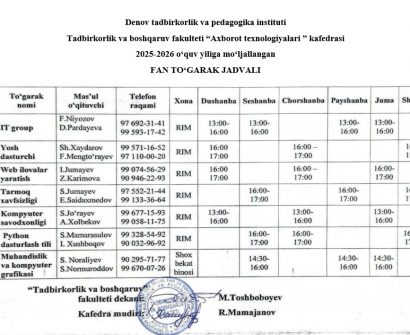 Yangiliklar AT kafedrasi o‘qituvchilari tomonidan RIMda olib borilayotgan to‘garak jarayonlaridan videolavha 31/10/2025