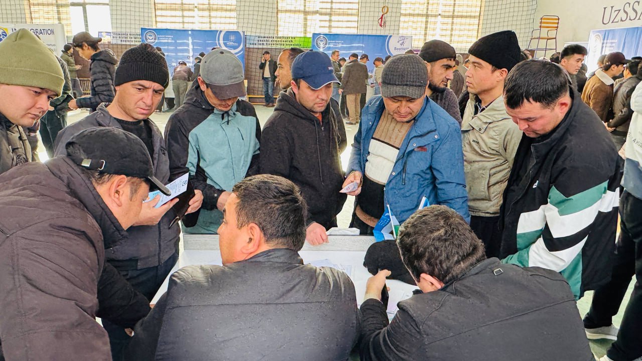 📌 Yarmarka doirasida turli davlatlardagi bo‘sh ish o‘rinlari taqdim etilib, rasmiy va ishonchli ish takliflari yuzasidan ma’lumotlar berilmoqda. Shuningdek, mutaxassislar tomonidan xorijda ishlash tartibi, hujjatlarni rasmiylashtirish va mehnat shartlari bo‘yicha batafsil maslahatlar berilmoqda.