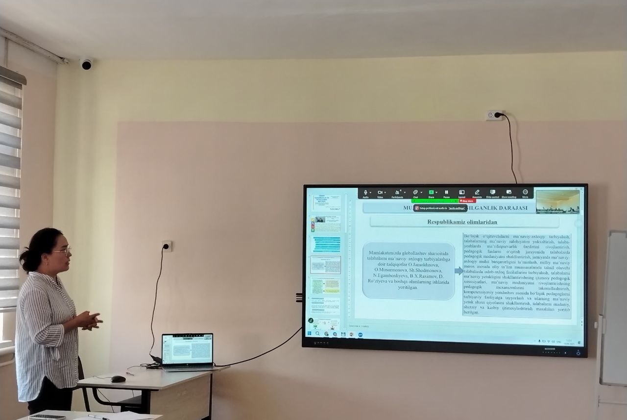 📍 DTPI Pedagogika fakulteti “Pedagogika va psixologiya’’ kafedrasida institut mustaqil tadqiqotchilaridan N.N.Donayevaning “Raqamli muhit sharoitida talabalarni ma’naviy-axloqiy tarbiyalash tizimini takomillashtirish”, F.D.Odinaboboyevning “Boshlang‘ich sinf o‘quvchilarida milliy hunarmandchilikning dastlabki mexanizmlarini rivojlantirish orqali kasbiy tarbiya berishni takomillashtirish” mavzusidagi ilmiy tadqiqot ishlarining kafedra muhokamasi muvaffaqiyatli o‘tdi.