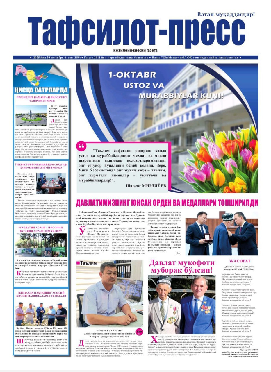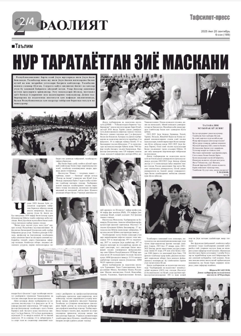 🔰 “Tafsilot-press” gazetasining 2025 yil 20 sentyabrdagi 6-sonida Denov tadbirkorlik va pedagogika instituti faoliyatiga bag‘ishlangan qator maqolalar chop etildi.