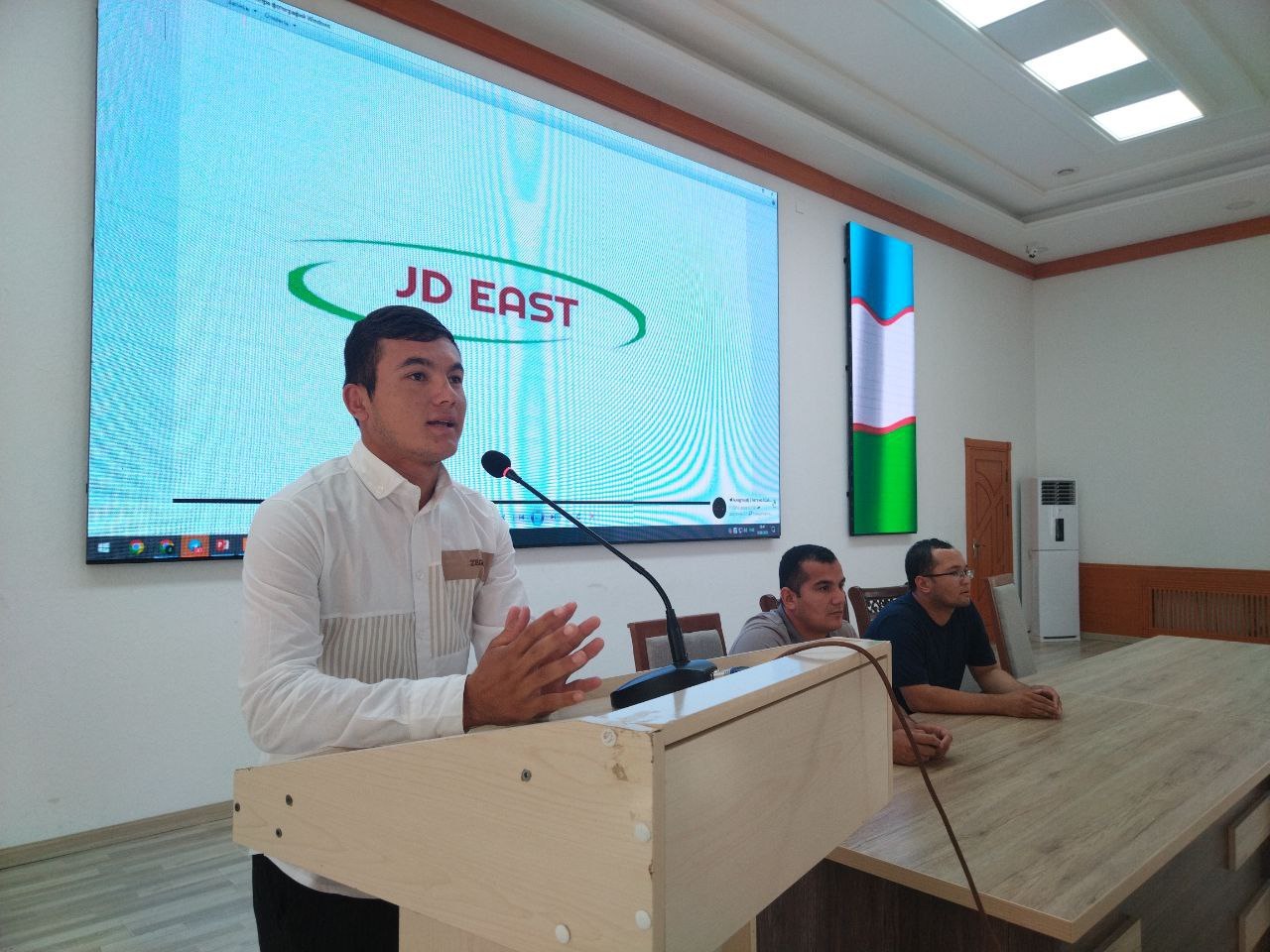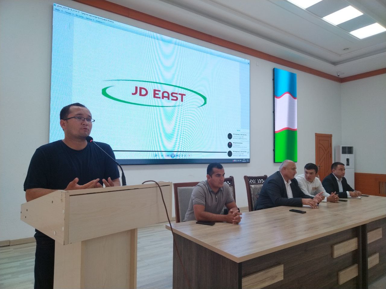 📌 Tadbir davomida “JD East” firmasi vakillari hamda ushbu dastur bo’yicha amaliyot o’tab kelgan fakultet talabasi Sodiqov Sirojiddin tomonidan talabalarga xorijiy davlatlarda ish va amaliyot dasturlari haqida batafsil ma’lumotlar berildi.