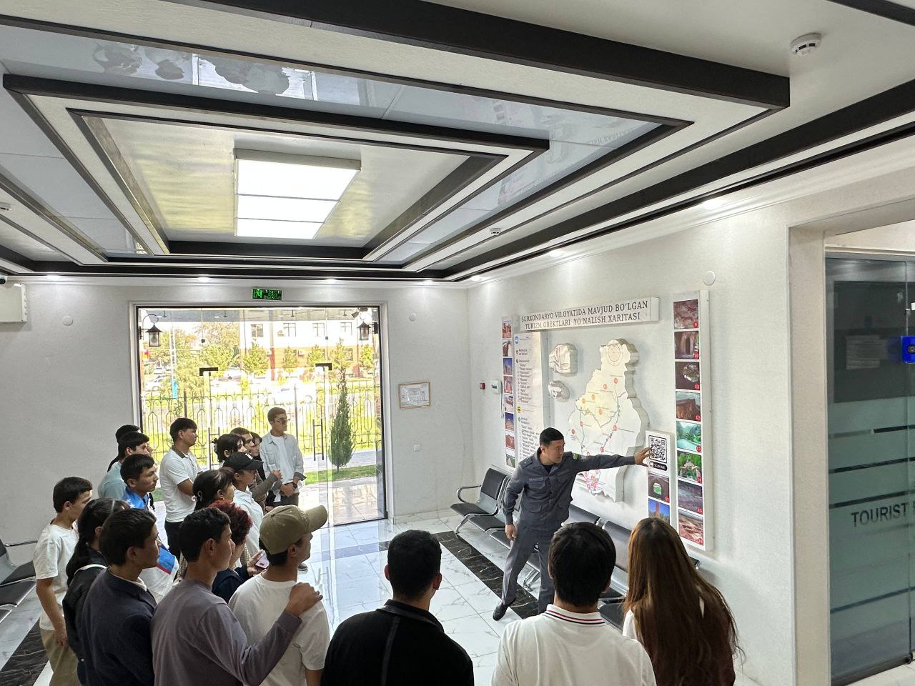 📌 Sayohat davomida talabalar Al-Hakim at-Termiziy ziyoratgohi, “Tourist Police” — Xavfsiz turizmni ta’minlash boshqarmasi, Termiz arxeologiya muzeyi, Termiz xalqaro savdo markazi hamda Hilton Garden Inn Termez Airitom mehmonxonasida bo‘lishdi.