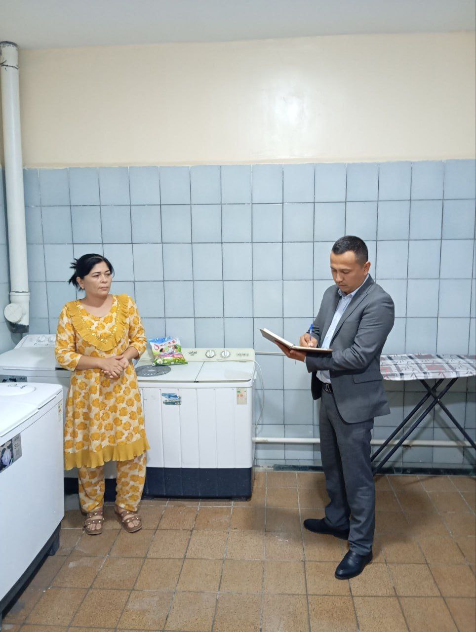 📌 Tashrif davomida talabalar turar joyidagi jihozlarning sozligi va talabalarning ovqatlanish, dam olish hamda dars tayyorlash sharoitlari o’rganildi.