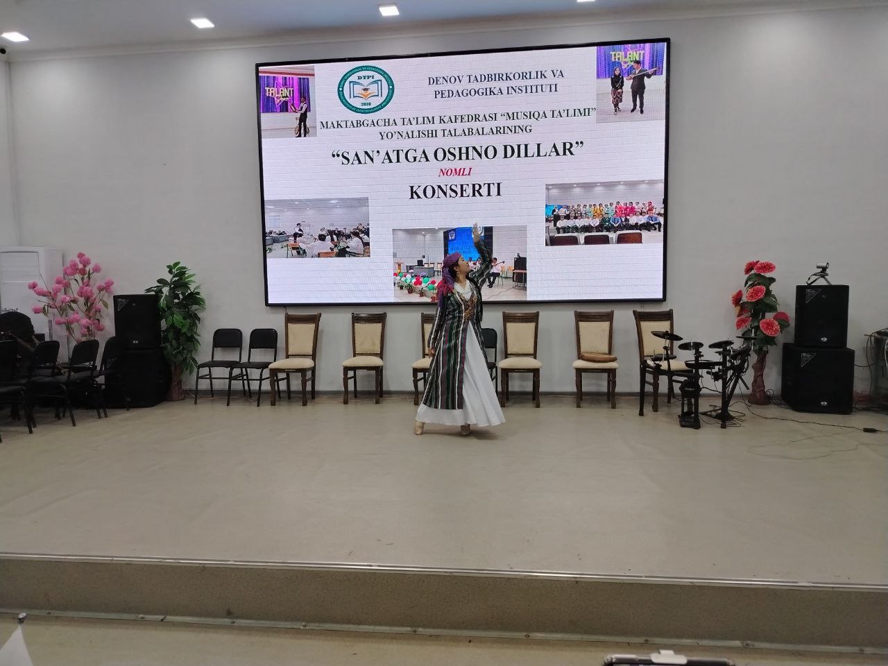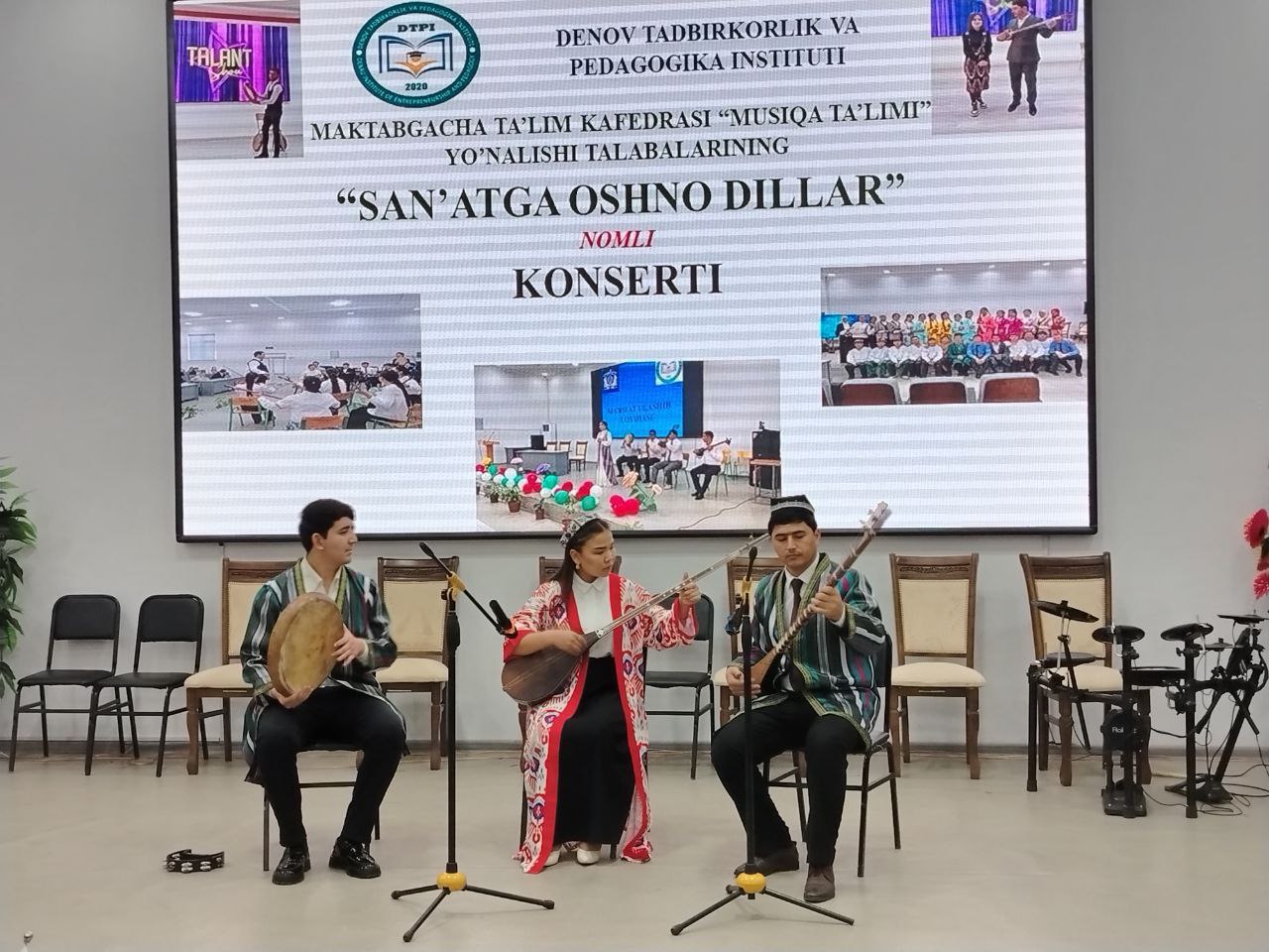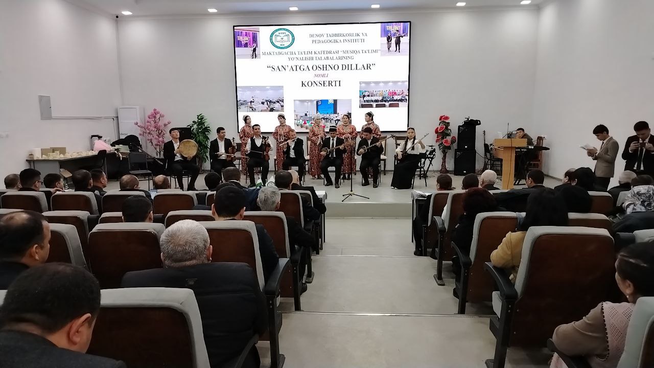 🏢 Denov tadbirkorlik va pedagogika institutining Pedagogika fakultetida navbatdagi tashkiliy va madaniy-ma’rifiy tadbir bo‘lib o‘tdi. Tadbir doirasida Maktabgacha ta’lim kafedrasining “Musiqa ta’limi” yo‘nalishi talabalari tomonidan tayyorlangan “San’atga oshno dillar” nomli konsert dasturi namoyish etildi. Mazkur dastur institut hayotida muhim ahamiyat kasb etib, san’at va madaniyatga bo‘lgan e’tiborni yanada kuchaytirishga xizmat qildi. Konsert dasturi institut rektori O. A. Ruziyev tomonidan bildirilgan samimiy tabrik so‘zi bilan ochib berildi.