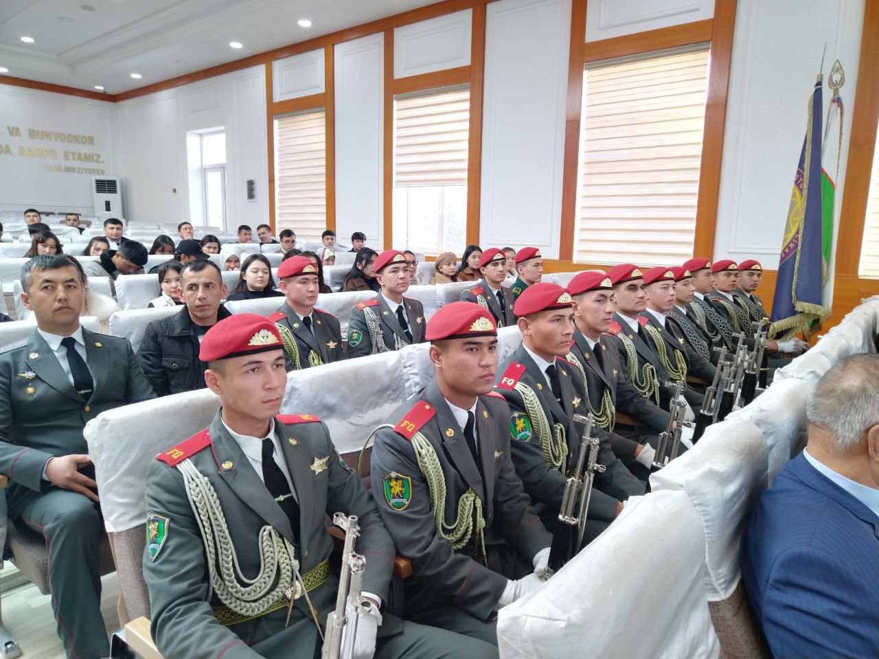 📌 Shuningdek, tadbir doirasida vatanparvarlik ruhini yuksaltiruvchi chiqishlar, she’rlar va musiqiy sahna ko‘rinishlari namoyish etildi. Harbiylar bilan bo‘lib o‘tgan samimiy suhbatlar talabalarda Vatanga sadoqat, milliy g‘urur va mas’uliyat tuyg‘ularini yanada mustahkamladi. Tadbir ishtirokchilari ushbu bayram tadbiri yosh avlodni vatanparvarlik ruhida tarbiyalashda muhim ahamiyatga ega ekanini ta’kidladilar.