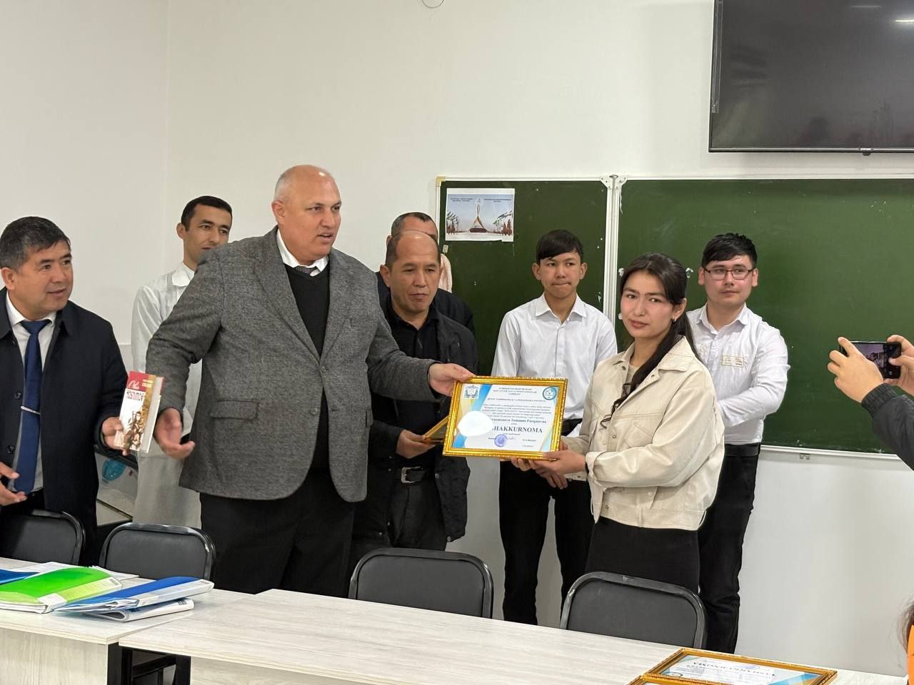 ✅ Institut rektori O.Ruziyev tomonidan sertifikat sohiblari munosib rag‘batlantirilib, ularga Tashakkurnoma hamda Badiiy kitoblar topshirildi. Ushbu e’tibor yoshlarning ilm-fan yo‘lidagi sa’y-harakatlarini yanada qo‘llab-quvvatlashga xizmat qiladi.