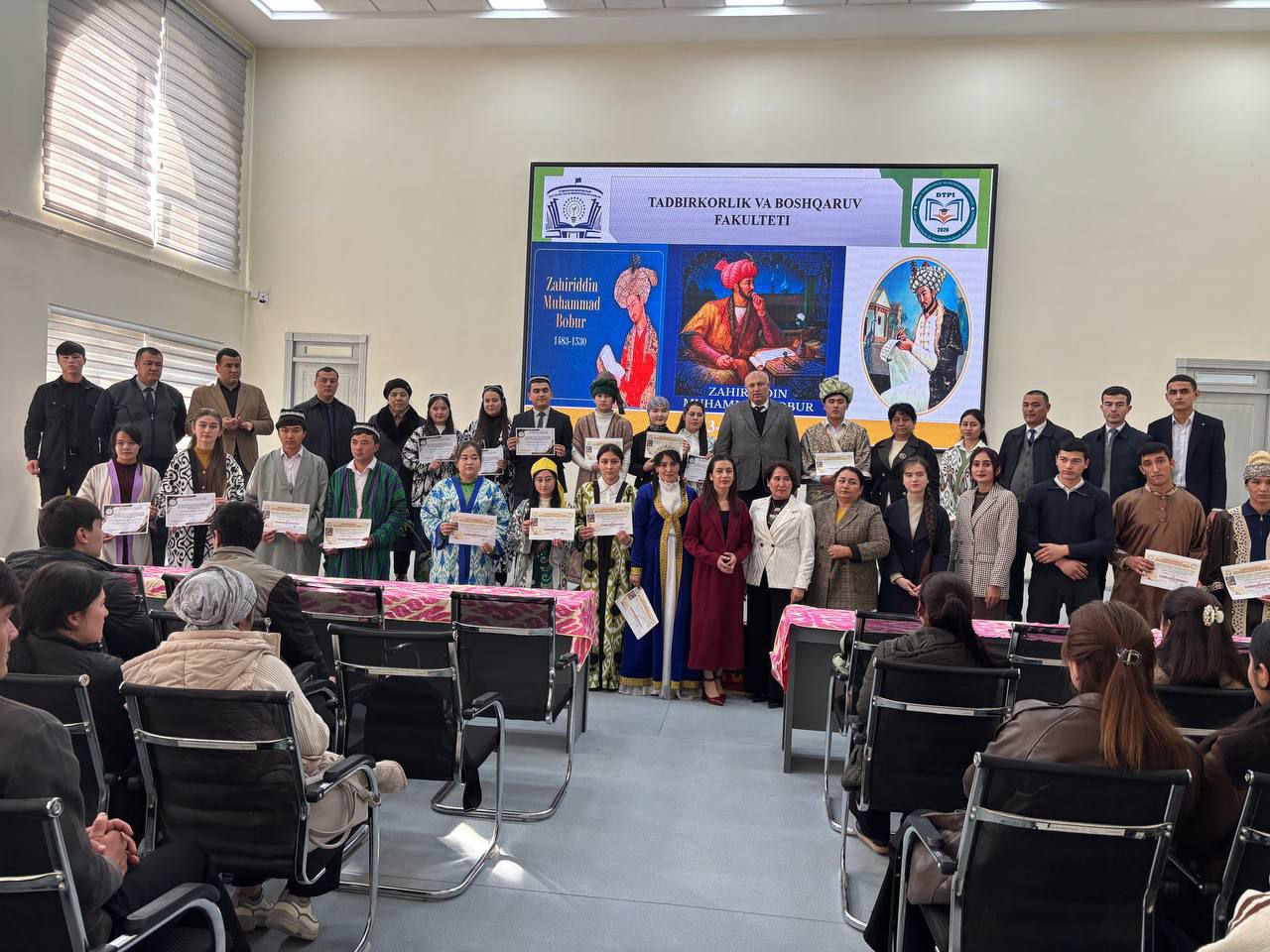 🏛 Buyuk sarkarda, shoh va shoir Zahiriddin Muhammad Bobur tavalludining 543 yilligi munosabati bilan Tadbirkorlik va boshqaruv fakultetida ma’naviy-ma’rifiy tadbir tashkil etildi.