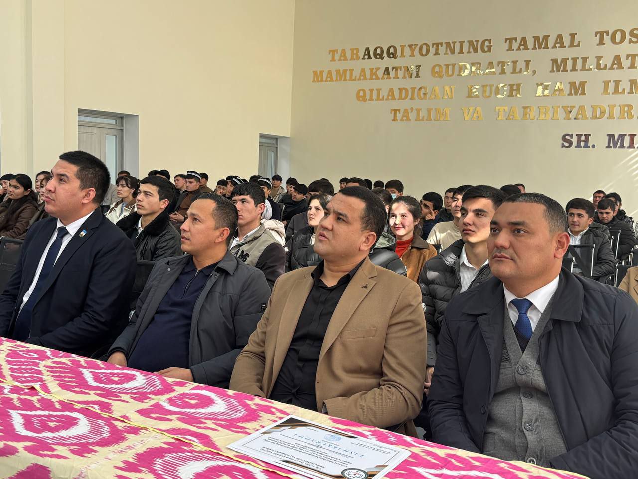 ⚡️ Tadbirda institut rektori O.A.Ruziyev, yoshlar bilan ishlash va ma’naviy-ma’rifiy ishlar bo‘yicha birinchi prorektor A.Mengliboyev, fakultet dekani M.Toshboboyev, dekan o‘rinbosari A.Ibragimov, professor-o‘qituvchilar, tyutorlar hamda talabalar ishtirok etdilar.