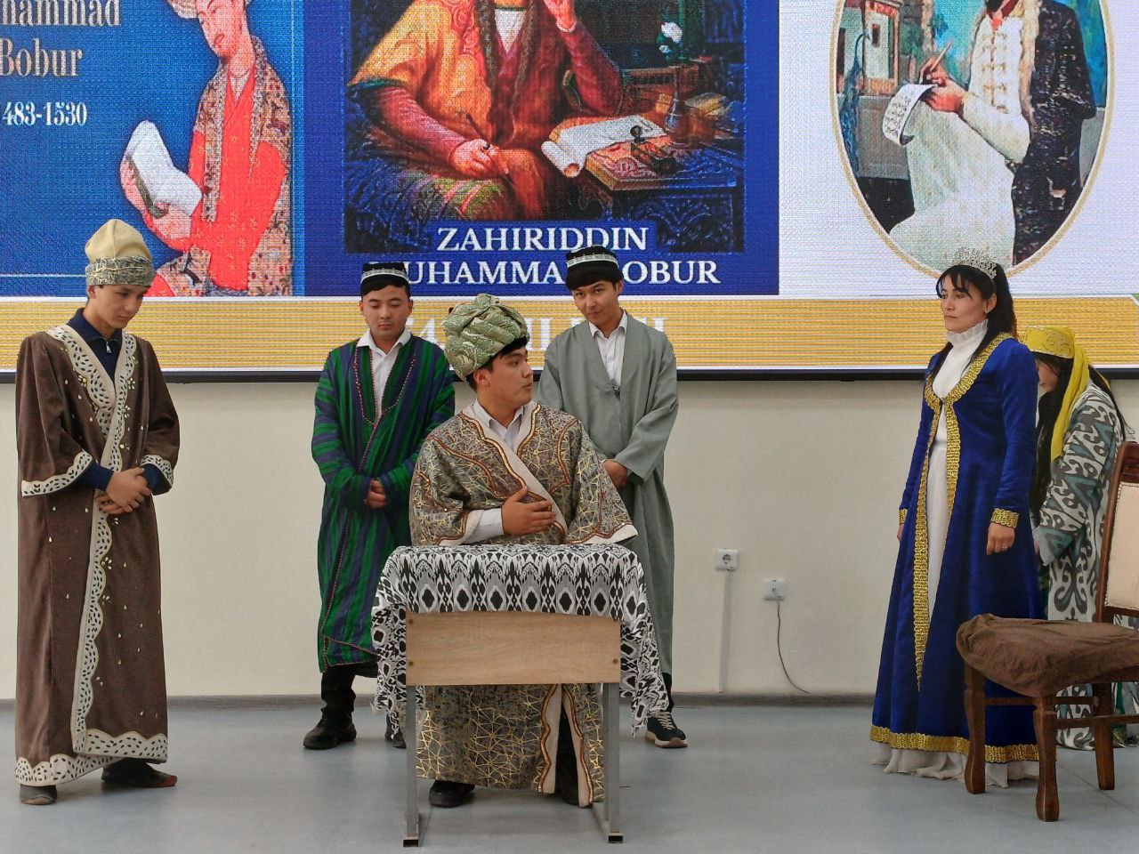 🎨 Tadbirni institut rektori O.A.Ruziyev kirish so‘zi bilan ochib, Z.M.Boburning hayoti, amalga oshirgan buyuk ishlari, boy tarixiy merosi hamda bebaho badiiy-adabiy ijodi haqida atroflicha so‘z yuritdi. Fakultet talabalari Boburning g‘azal va ruboiylaridan namunalarni ifodali tarzda o‘qib berdilar, sahna ko‘rinishlarini namoyish etdilar.