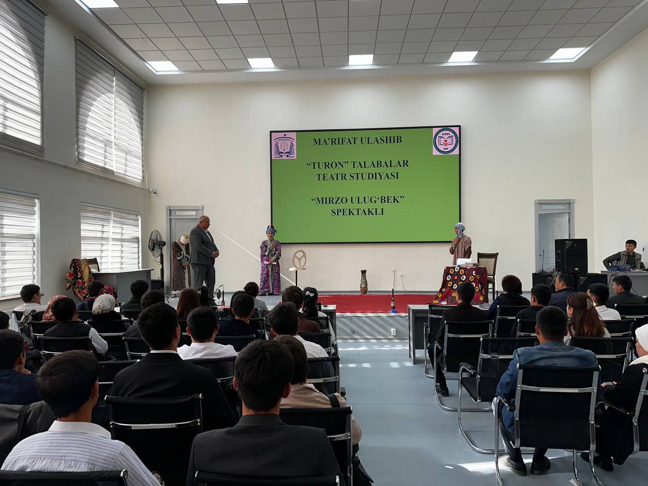 ♻️Tadbirkorlik va boshqaruv fakultetida “Ma’rifat ulashib” loyihasi doirasida ma’naviy-ma’rifiy tadbir bo‘lib o‘tdi. Tadbir davomida fakultet iqtidorli talabalaridan tashkil topgan “Turon” teatr jamoasi a’zolari dramaturg Maqsud Shayxzodaning “Mirzo Ulug‘bek” asari asosida sahnalashtirilgan spektaklni tomoshabinlarga taqdim etdilar.