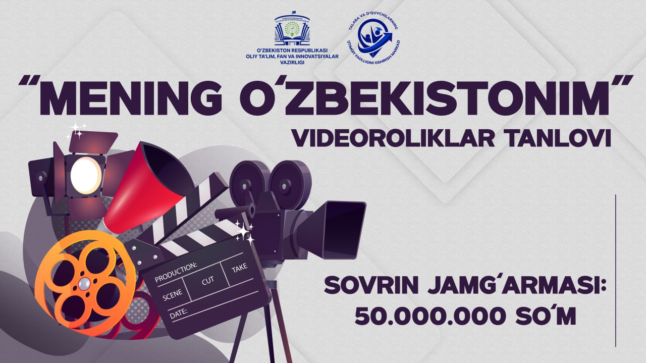 🇺🇿 Oliy ta’lim, fan va innovatsiyalar vazirligi hamda O‘zbekiston Yozuvchilar uyushmasi hamkorligida tashkil etilayotgan “Mening O‘zbekistonim” videorolik tanlovi – bu Vatanimizni sevuvchi, ijodkor, iste’dodli talabalar uchun katta imkoniyat!