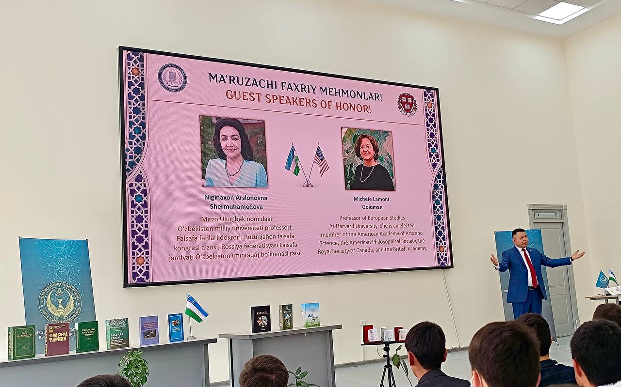 🇺🇸 Ochiq dars davomida Garvard universitetining Yevropa tadqiqotlari professori (Amerika san’at va fanlar akademiyasi a’zosi, Kanada va Buyuk Britaniya Qirollik akademiyasi vakili) Michele Lamont ham masofaviy (online) shaklda ishtirok etib jamiyat falsafasining dolzarb muammolari va zamonaviy tendensiyalariga alohida to’xtalib o’tdi.