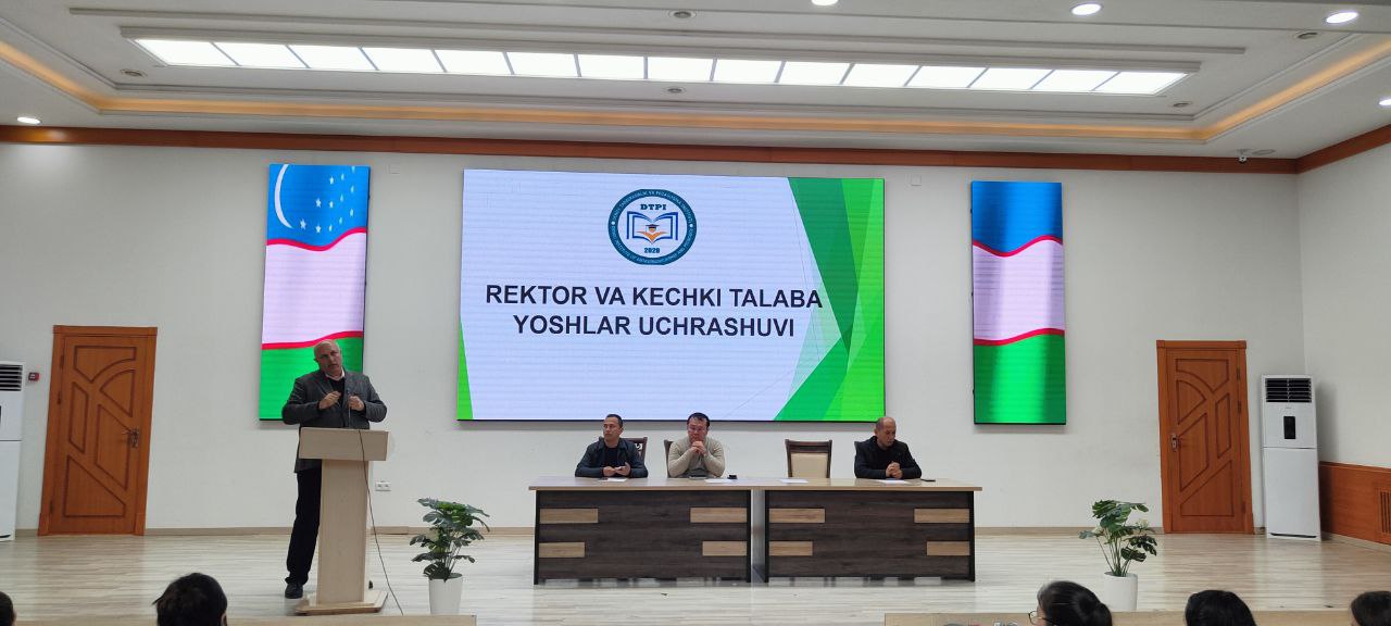 ⚡️ Denov tadbirkorlik va pedagogika institutida kechki ta’lim yo‘nalishida tahsil olayotgan talabalar bilan “Rektor va yoshlar” uchrashuvi bo‘lib o‘tdi. Samimiy va ochiq muloqot tarzida tashkil etilgan ushbu uchrashuvda talabalarni qiziqtirgan masalalar, jumladan ta’lim sifati, o‘quv jarayonini takomillashtirish, bo‘sh vaqtni mazmunli tashkil etish hamda yoshlarning tashabbuslarini qo‘llab-quvvatlash masalalari muhokama qilindi. Rektor tomonidan bildirilgan takliflar talabalarda katta qiziqish uyg‘otdi.