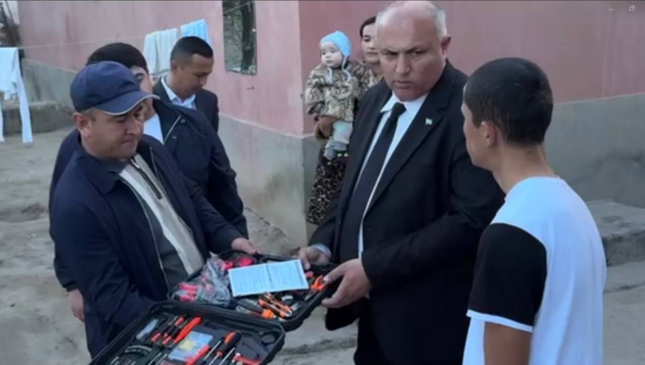 Uchrashuv so’ngida mazkur yoshlarni kasb-hunarga yo‘naltirish maqsadida, ularga ustachilik asbob-uskuna va jihozlari topshirildi.