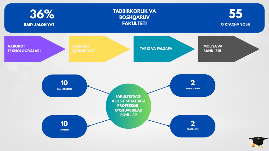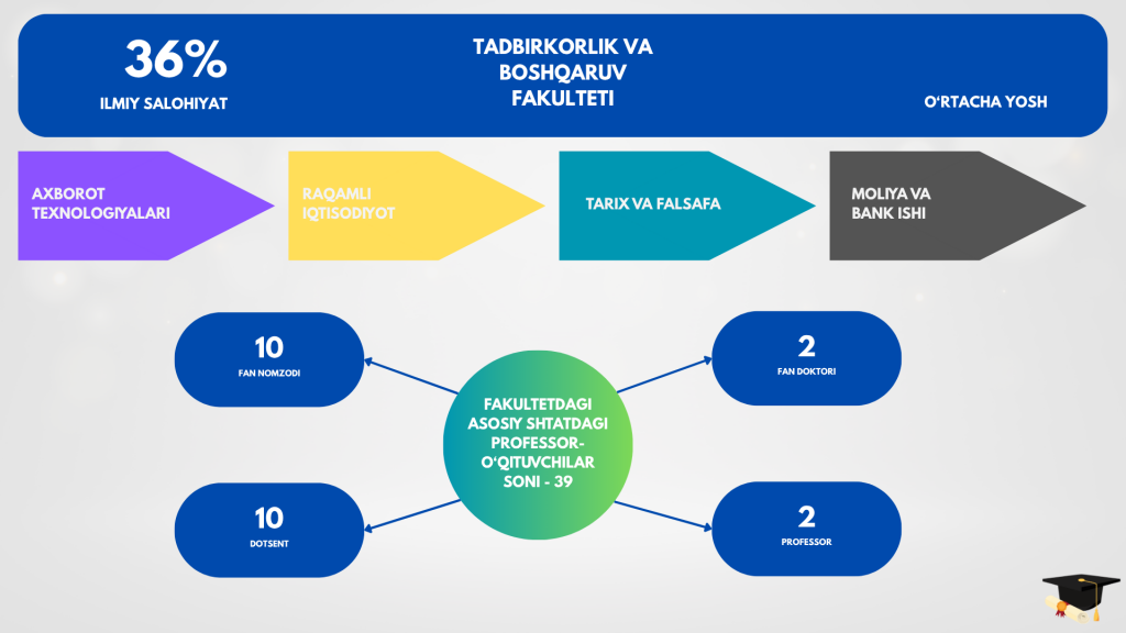 • Fakultet bitiruvchilarining ish bilan ta’minlanish darajasi 86 foiz (%).
