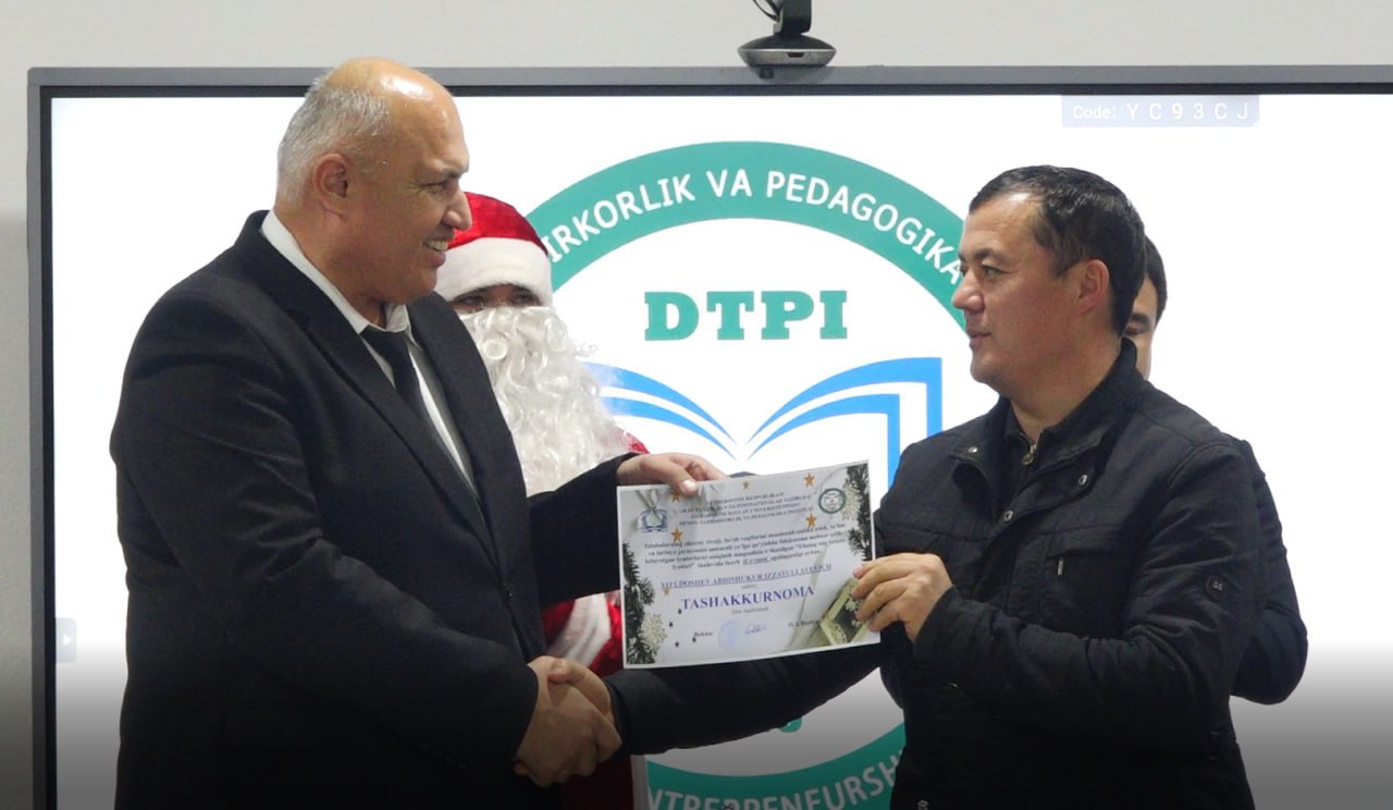 📌 Shuningdek, yil davomida turli nominatsiyalar bo‘yicha g‘oliblikni qo‘lga kiritgan kafedra mudirlari hamda “Yilning eng yaxshi tyutori” tanlovi g‘oliblari ham institut rahbariyati tomonidan taqdirlandi. Ushbu tadbir ta’lim sifatini oshirish, ilmiy-pedagogik faoliyatni yanada rivojlantirish va yoshlarni faol bo‘lishga undash yo‘lidagi muhim qadam bo‘ldi.