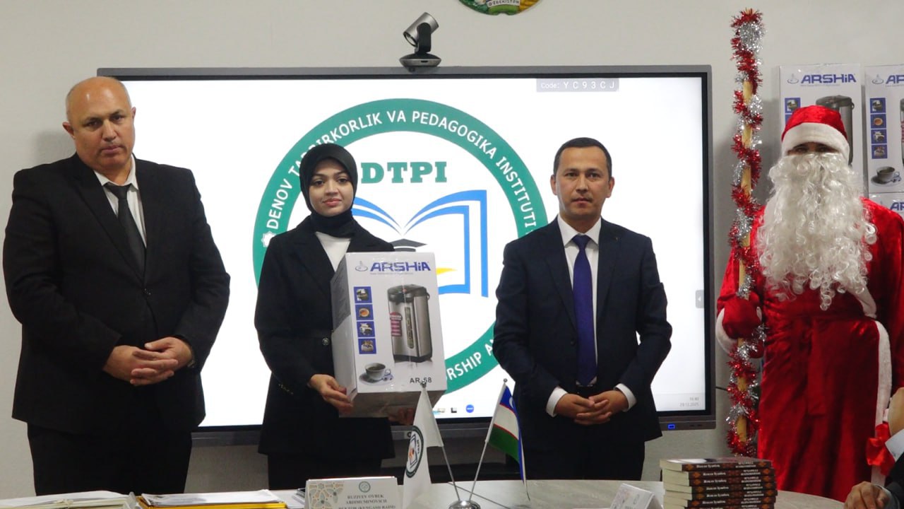 ⚡️ Denov tadbirkorlik va pedagogika instituti rektori O. Ruziyev tomonidan yil davomida o‘zining fidokorona mehnati, tashabbuskorligi va yuqori natijalari bilan ajralib turgan faol xodimlar hamda talabalar munosib taqdirlandi. Jumladan, “Eng faol yil talabasi” tanlovining respublika bosqichida munosib ishtirok etib, “Eng faol tadbirkor ayol” nominatsiyasi bo‘yicha 🥇-o‘rinni qo‘lga kiritgan Imomaliyeva Shaxzoda alohida e’tirof etildi.