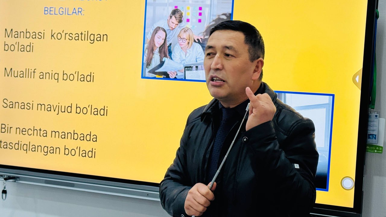 👍 Mashgʻilot jarayonida Mediasavodxonlik va axborot madaniyati haqida talabalarga batafsil maʼlumot berildi.